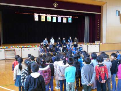 今日は、6年生の卒業お祝い集会がありました。これまでに練習した歌のプレゼントも、とっても喜んでもらえました♪縦割り班や、学校生活のいろいろな場面でお世話になっている6年生、いつも優しく頼りになる6年生に、「ありがとう」の気持ちを込めて、歌うことができました♪