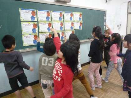 みんな、あれこれと「おに」はいるようですが、その中ですぐにやっつけられそうなものを紙に書き、一人ひとり発表しました。