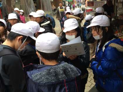 道徳「コリアタウンへようこそ」の学習と関連して、交流の入り口として実際に見学に行きました。韓国・朝鮮の料理屋さん、布団屋さん、チョゴリが置いてある店などがありました。オリエンテーリングやインタビューを通して異国の文化にふれ、日本との違いを感じながらも、あたたかな人たちに出会い、ぐっと親近感が湧いたようでした。特にキムチの試食では、「今までキムチは苦手だったのに、おいしい!」という声が聞かれました。本場は一味違うことに気付く子どもたち、いい味覚の持ち主です。