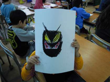 などなど自分たちのふだんの生活をふり返ってオニの顔をかきました。