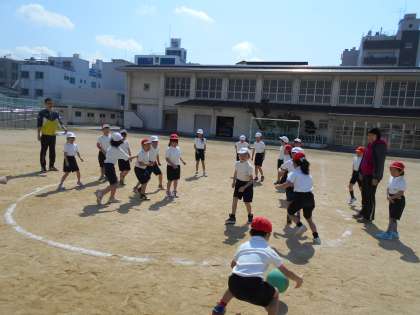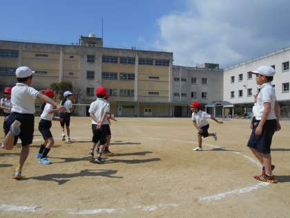 今日の体育の時間は、1・2年生合同でまるドッジをしました。2年生の投げるボールが強くて、さすが2年生と思う場面が多くありました。1年生もボールから避けたり、受けたりして、みんなで楽しむことができました♪チームごとに励まし合う姿も見られ、また休み時間にでも、学年を越えて遊んでほしいなと思います♪