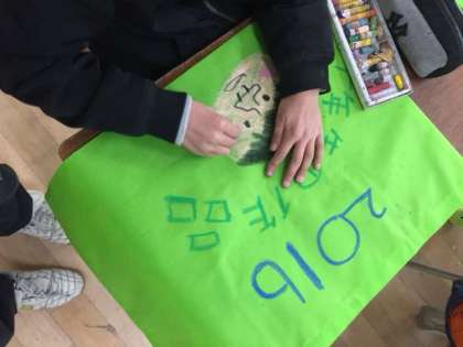図工の時間に作品袋をつくりました。もともとある袋にクレパスで似顔絵と好きな絵を書きこみオリジナル作品袋に仕上げました。4年生も終わりだな〜と感じることが増えてきました。