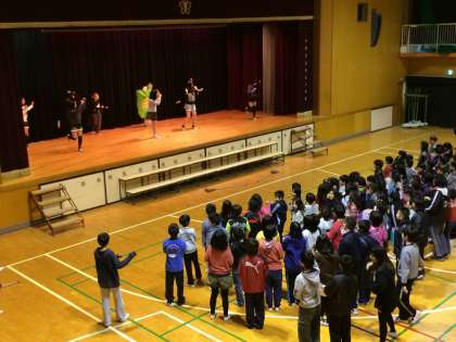 最後は、全校児童みんな立ち上がって、一緒に踊りました!!