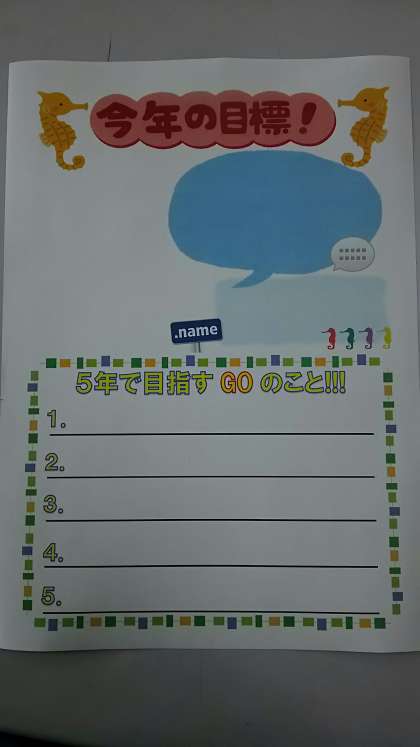 今日は一人ひとりが一年間の目標を考え紙に書きました。