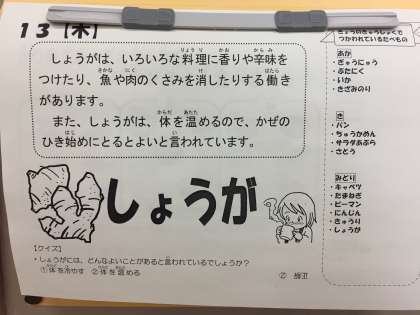 しょうがは、今日の給食では、「きゅうりのしょうがづけ」に使われていました。
