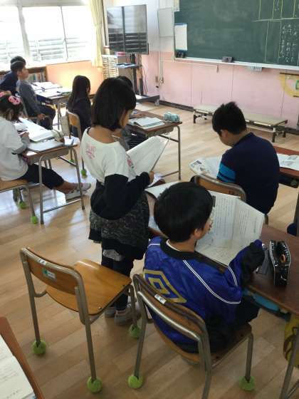 子どもたちは、語気を強めたり、弱めたり、いろいろな工夫をして音読しています。