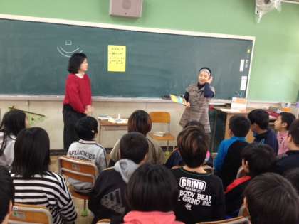 今日は、「旭お話隊」の方々が来てくれて、本やお話の読み聞かせを行う「お話の会」がありました。