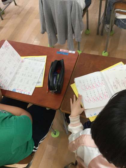 今日は、みんなが、こつこつがんばっている自主学習ノートをお互いに見せ合いました。