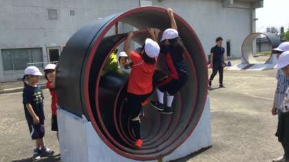 施設見学の途中で、水道管の大きさを体験できるコーナーがありました!
