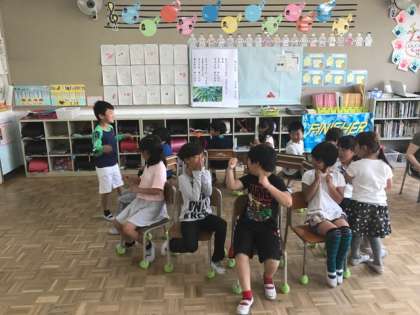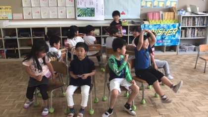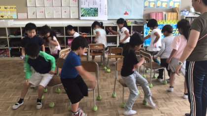 先生たちは何も声をかけていないのに、自分たちだけで、準備をして、椅子取りゲームを楽しんでいました。