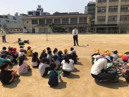 今日は交通安全指導があり、警察の方にも来ていただきご指導していただきました。