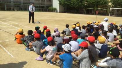旭警察署の方と区役所の方が来てくださって安全な歩き方を指導してくださいました。