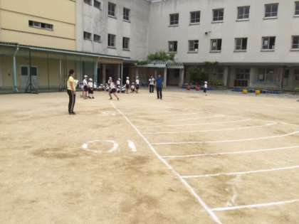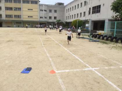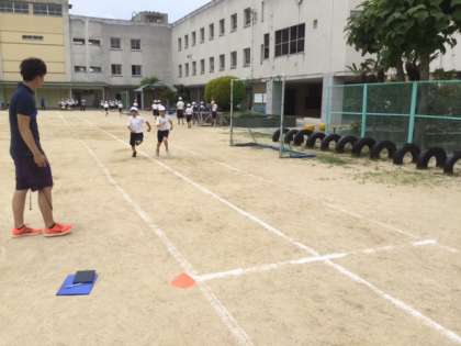 今日は4年生と一緒に、ソフトボール投げと50メートル走をしました。