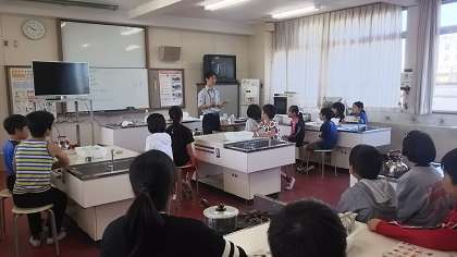 ガスこんろの安全な使い方を学び、湯をわかしました。