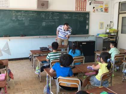 今日は、ラージ先生と初めての英語。