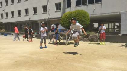 「運動神経いいんかい!(委員会)」が中心となって、今日はなわのいろいろな跳び方について教わりながら挑戦しました。