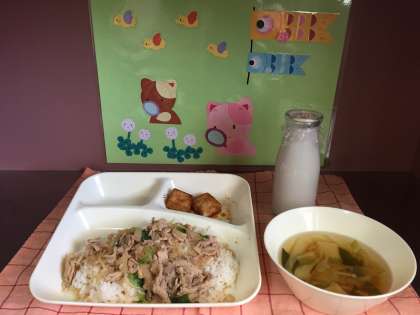 今日の給食に出た「豚丼」も人気で、みんな「おいしい!」と大喜びでした。