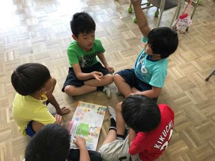 先生たちは何も言っていないのに、子どもたち同士で集まって町探検の役割決めをしていました。