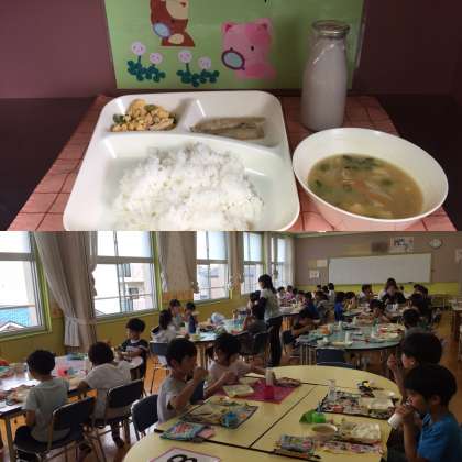 また、3年生と4年生の交流給食をランチルームで行いました。