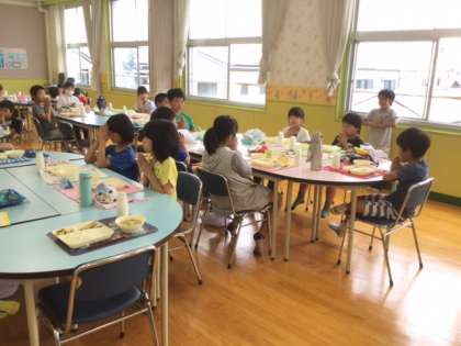 遠足も一緒だったので、給食中は話がとってもはずんでいました♪