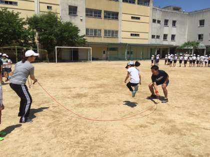 初めは入るのが精一杯だったのですが、今日はリズムに合わせてたくさん跳べました。