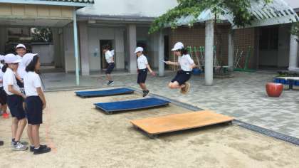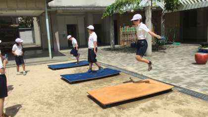 子どもたちや森先生を見習って、「はやぶさ」が2回以上跳べるように練習中!!