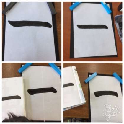 今日は筆の運び方を学習してから、初めて墨をつけて書きました。