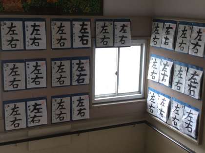 「筆順に気をつけて、字形を整えて書こう」というめあてのもと「左右」と書きました。