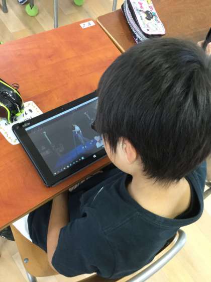 動画を見ながら、それぞれの技のポイントが解説されていて、子どもたちは、集中して見ていました。