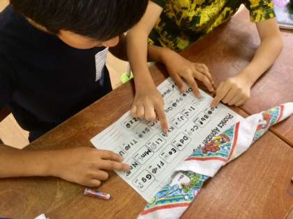BONGOは、ペアになって、アルファベット表の中から3つずつ選んで、指で押さえます。自分の選んだアルファベットが出てくると指を離すことができます。3つとも離せたら勝ちです!