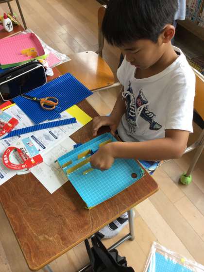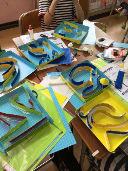 4年生の図工では、「コロコロガーレ」というビー玉が面白い転がり方をする迷路をつくっています。