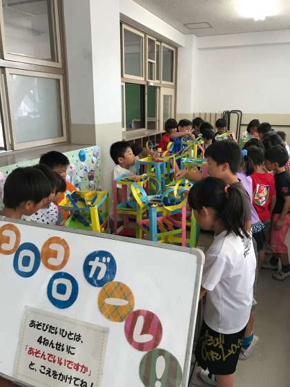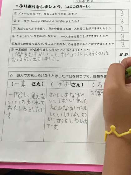 ジグザグの道がある迷路のコロコロガーレや、落とし穴がたくさんあるコロコロガーレなど、みんなそれぞれに工夫をこらしていました。
