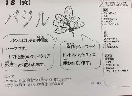今日のシーフードトマトスパゲッティに「バジル」が使われていました。