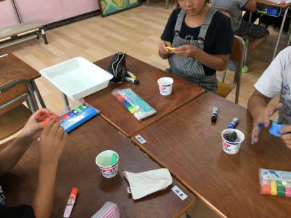 紙粘土に好きな色の絵の具を混ぜて、、、、
