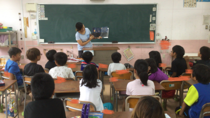 道徳の学習で、「カワウソ村の火の玉ばなし」の絵本の読み聞かせをしました。カワウソ村のさいぞうに対して、ごんすけが暴言を言ったり、暴力をふるったりするお話です。最後は、ごんすけに罰が当たるという結末です。