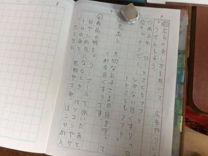国語科では「広告と説明書」の読み比べをしています。