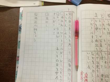 グループごとに作るのですが、キャッチコピーを考えたり、見出しを考えたり、商品の特徴を考えたりと…協力して取り組んでいます。