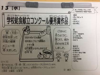 今日の献立は、コンクール献立でした。おいしいと子どもたちからも好評でした。