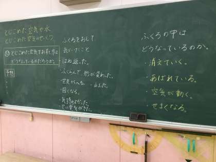 今日は「空気を閉じ込めるとどうなるか??」という実験をしました。