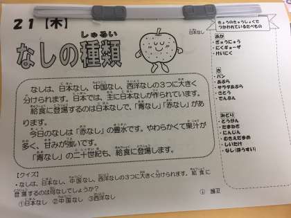 そして、給食調理員さんが「なし」を1つずつむいてくれました。
