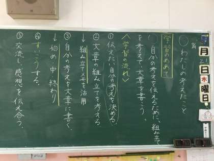 今日は、友だちに伝えたい考えを何にするかを考えました。