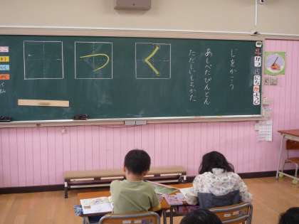 昨日の国語の学習では、自分の名前を画用紙にかきました。