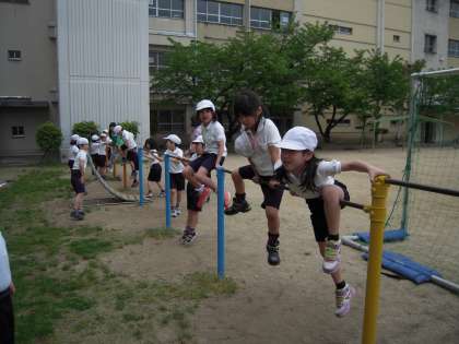 みんなの祈りが通じて雨も上がり、体育科の学習を