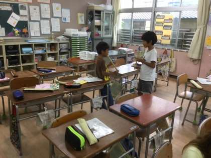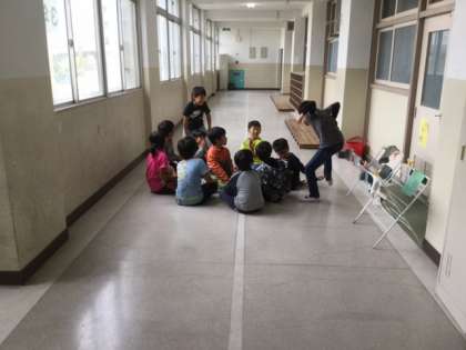 あいにくの雨の日。外で遊べない日も子どもたちは工夫して楽しい休み時間を過ごしています。