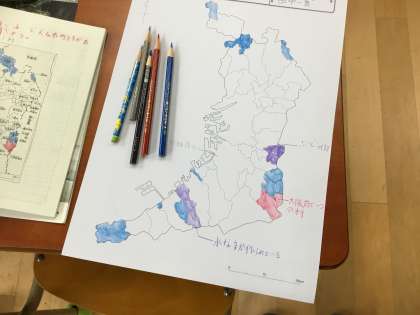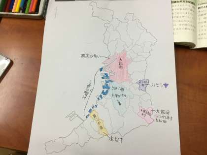 学習したことを地図に書き込んで、大阪府のことをさらによく知っていきたいと考えてます。