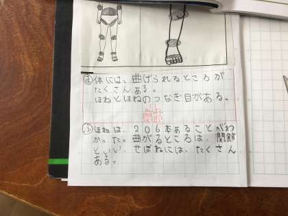 足だけでなく、ヒトの体は関節で曲がり、動くことを学習して、分かったことをノートに書きました。