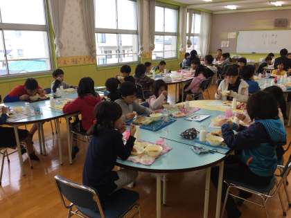 今日は、2年生と6年生がランチルームで交流給食をしました。楽しそうに食べていました。