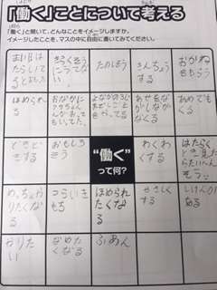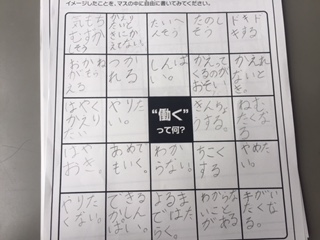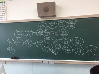 働くことから思いつく言葉を紙にどんどん書き出して、発表しました。