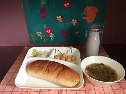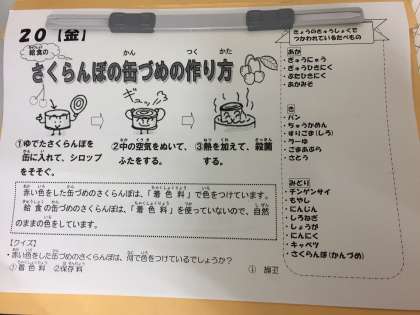 今日は、タンタンめんやさくらんぼの缶詰めなど、子どもたちに大好評でした。