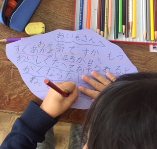 先生たちがお芋さんに向かってこの手紙届けるからねー!